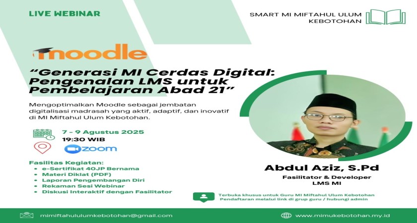 Webinar MI Miftahul Ulum Kebotohan: “Generasi MI Cerdas Digital: Pengenalan LMS untuk Pembelajaran Abad 21”